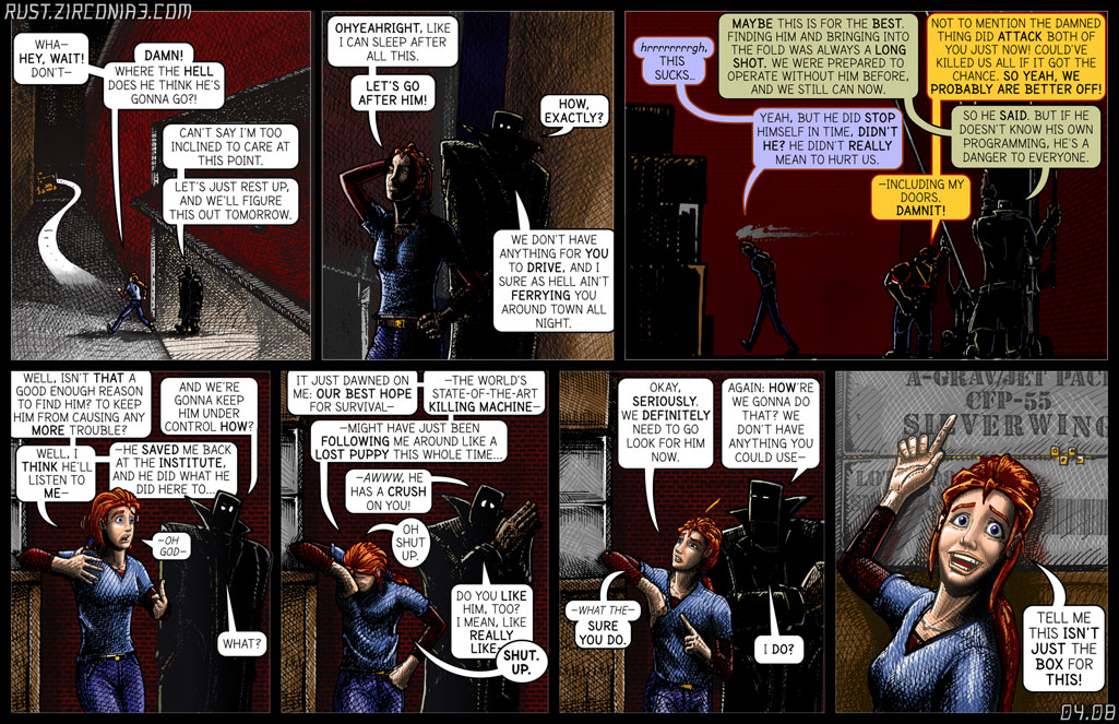 Remastering notes: I used to have a whole bunch of crap here about my "process" which I just overwrote because 1) I couldn't even stand to read what was here before, so I can't imagine anyone else wanting to plow through it either, and 2) I just redrew half the page on the tablet, so whatever process I used before got obliterated.
